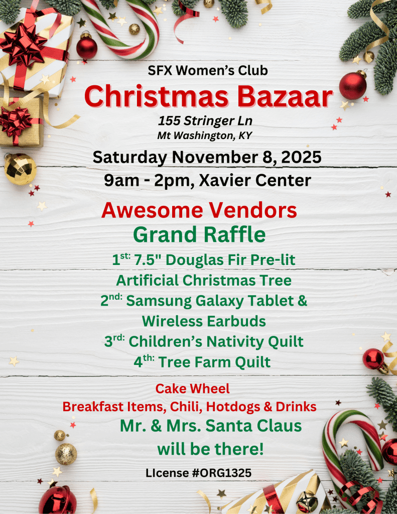 Vendor Registrations for the 2025 Women’s Club Christmas Bazaar are still being accepted.